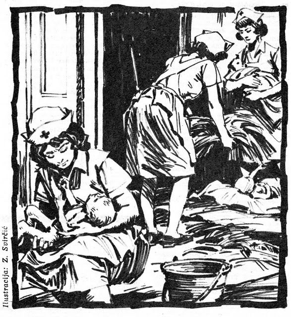 3/3: U baraci, u kojoj smo smjestili okupanu dojenčad, na bijelim plahtama ležali su mali ružičasti golišavci, nemirno bacakali nožicama, a male ručice, mali prstići nemirno su se hvatali u zraku. Mala otvorena usta i plač uporno su tražili hranu. Svaki bi od nas trebao desetak ruku da ih brzo nahrani da stiša plač.